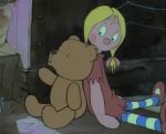 Cette douce chanson ponctuant le court métrage est interprétée également par une voix féminine au milieu de l'aventure : celle toute de délicatesse de Brigitte Virtudes pour la version française – elle double également avec beaucoup de sensibilité le personnage d'Annie (elle prêtera encore sa voix pour une poupée de chiffon dans Toy Story 3) – et celle de Carmen Daye pour l'originale. C'est la poupée de chiffon qui chante ainsi, pour elle-même et son ami en peluche, s'accompagnant d'un vieux piano droit dans le lieu où réside César, les images soulignant en parallèle l'ennui qui pèse sur les deux jouets, ceux-ci étant faits avant toute chose pour être aimés et manipulés par des petites mains, la tristesse submergeant à ce moment-là l'ourson regardant la rue par la fenêtre et laissant échapper quelques larmes à la vue des enfants jouant à se lancer des boules de neige et faire un bonhomme de cette matière (on devine alors que le comportement ronchonneur et un peu agressif parfois adopté par Teddy, c'est un ours après tout, est une protection d'un être sensible et doux, mais de peluche tout de même). On remarquera d'ailleurs peu après, que lors d'une autre scène où l'ennui ennuie Teddy, ce dernier pour passer le temps feuillète un livre qui n'est autre, du moins l'illustration de la couverture semble y faire référence, que le bel album jeunesse Le Bonhomme de neige de Raymond Briggs qui fut adapté en un tout aussi magnifique film d'animation réalisé en 1982 par Dianne Jackson, ouvrage sur lequel justement Paul Shardlow, directeur artistique de Teddy et Annie était décorateur comme il le fut précédemment sur La Folle Escapade réalisé par Martin Rosen d'après le roman de Richard Adams et où certaines ambiances de couleurs se retrouvent quelque peu dans Teddy et Annie (de même Ray Kelly, animateur sur Teddy et Annie était assistant sur La Folle Escapade). Officiait également pour Le Bonhomme de neige Theresa Wiseman présente comme animatrice sur Teddy et Annie.