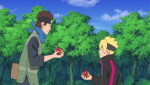 L’examen se passe bien pour Boruto et ses amis qui parviennent à passer les deux premières épreuves et à faire partie des 12 combattants sélectionnés pour des combats dans l’arène. Lors de son combat contre Shikadai, Boruto utilise le ninja gun, ce qui n’échappe pas à Naruto qui n’a pas d’autre choix que de disqualifier son fils pour cause de tricherie.