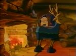 Quelque temps plus tard, le jeune enfant fabrique un petit traineau qu'il fait tirer par son chien Rex, mais l'expérience n'est guère concluante. Arrive alors Romuald le renne volant, littéralement tombé du ciel en faisant, disons le clairement, l'andouille : avec ses amis et sa famille de rennes volants, il faisait en fait le malin en montrant qu'il pouvait entre autres jongler avec ses bois très flexibles tout en volant (il parle même avec ses bois). Résultat, il a rencontré sans la voir la cime d'un sapin et il s'est retrouvé sous la neige en chutant également sur l'enfant et son chien. Séparé de son troupeau, Romuald est choisi par le jeune père Noël qui décide de faire un nouvel essai avec ce nouveau venu pour conduire le traineau, mais cela n'est pas plus concluant qu'avec Rex.