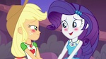 Quelques temps plus tard, Applejack et Rarity convient leurs amies Twilight Sparkle, Sunset Shimmer, Pinkie Pie, Rainbow Dash et Fluttershy au centre commercial de Canterlot pour leur annoncer une grande nouvelle. En effet, elles ont toutes les deux postulé pour un travail de vendeuse de pommes au parc d'attractions Equestria Land et elles auront leur réponse par téléphone aujourd'hui ! Rarity a toutefois le trac et est angoissée, étant donné qu'elle n'a pas des connaissances sur les pommes équivalentes à celles de sa meilleure amie. Cette dernière la réconforte en lui disant qu'elles décrocheront ce travail toutes les deux et qu'elles passeront l'été ensemble.