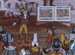 Un colporteur ou plus précisément un montreur d'images, celui qui en des temps lointains apportait nouvelles, excitait les esprits et faisait trotter les imaginations, arrive en ville. Il installe son éventaire sur la place du village où la foule vient, pressé autour de lui, pour entendre ses histoires, le tout accompagné des images d'Epinal...