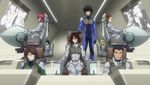 Gundam 00 Setsuna F. Seiei Wang Liu Mei Lockon Stratos le GN-001 Gundam Exia Allelujah Haptism Marina Ismail et Shirin Bakhtiar Sumeragi Lee Noriega Tieria Erde Patrick Colasour Ali Al Saachez Billy Katagiri et Graham Acker Alejandro Corner et Ribbons Almark le GNW-001 Gundam Throne Eins Nenna, Johann et Michael Trinity Lichtendahl, Feldt, Christina et Lasse Louise Halevy et Saji Crossroad le GNMS-XCVII Alvaaron Andrei Smirnov le GN-0000+GNR-010 00 Raiser Regene Regetta Mister Bushido Kati Mannequin et Aber Rindt Louise Halevy et Soma Périès Sergei Smirnov Hiling Care Haro Revive Revival et Bring Stabity Klaus Grad le GNX-U02X Masurao Lockon Stratos et Anew Returner Setsuna F. Seiei à la fin de la série le GN-0000+GNR-010 00 Raiser contre le CB-0000G/C Reborns Gundam Louise Halevy et Saji Crossroad L'équipage du Ptolemaios II à la fin de la série