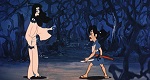 Le film chroniqué ici ne reprend que quelques éléments de la légende de Sarutobi Sasuke, le présentant sous les traits d’un enfant apprenant l’art du ninjutsu. L’histoire permet ainsi au jeune public de découvrir ce personnage emblématique de la culture nippone tout en se divertissant grâce à un scénario efficace. En effet, si Le Serpent Blanc est généralement loué pour ses qualités techniques et graphiques, La Forêt aux Sortilèges est plutôt cité pour ses progrès en termes de narration et de rythme par rapport au précédent film. Néanmoins, cette évolution ne semble pas s’être faite sans concessions.