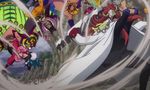 Pourtant, même si cela est amusant de retrouver tous ses personnages, la limite du format en film amènent certains à disparaître du cadre sans vraiment s’y attarder. Etant donné que tout est centré sur la récupération du coffre au trésor et à la défaite de Bullet, le film laisse peu de places aux sous intrigues. A l’instar de la confrontation Sabo/Lucci dans Gold, certains combats annexes (Zoro/Fujitora, Smoker/Sabo,…) vont se limiter aux simples échauffourées. Frustrant pour les fans qui auraient pu trouver ces confrontations particulièrement prometteuses et qui en attendaient davantage. Cependant, au niveau de son intrigue, on peut tout de même souligner la mise en avant de la relation Luffy-Ussop qui n’était que survolée depuis Enies Lobby.